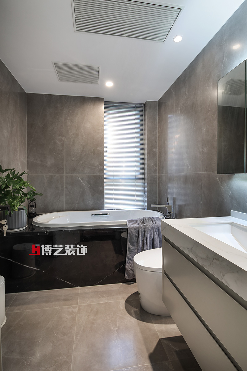 衛生間依舊用深色表現溫暖,泡上一個澡解除一天的疲乏,你的慵懶盡情釋放。