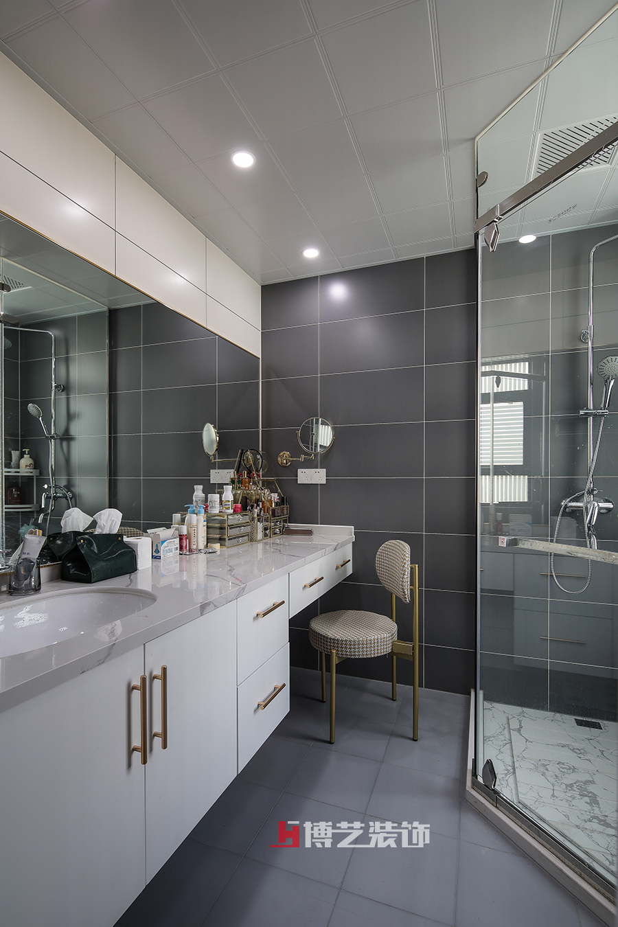 設計師通過溝通之后,最終確定了用墨綠色來表達具有現(xiàn)代華麗感的生機,既能體現(xiàn)年輕的空間中的莊重優(yōu)雅,又能體現(xiàn)主人自帶的文墨優(yōu)雅。