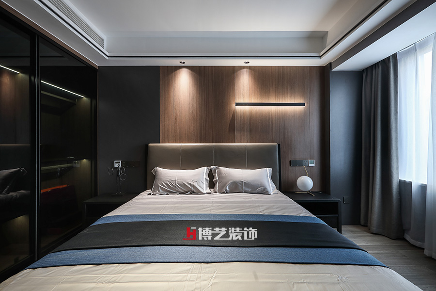如果說房子是主人生活方式的投射,那么主臥更是主人品質(zhì)生活的畫像。這里是主人最為私密的放松空間,不妨將每一平米的舒適感都發(fā)揮到極致。高級灰勾勒著整個空間寧靜的基調(diào),木質(zhì)的背景又用奶茶般的溫柔進行包裹,讓整個主臥嚴謹冷酷又不乏舒適溫暖。