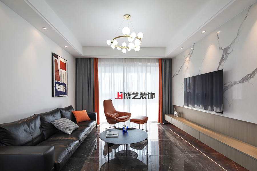 簡單的色塊與利落的線條,用木作的溫度包融石材的冷淡,以“簡、斂”之手法,把溫暖與寧靜留在家里。