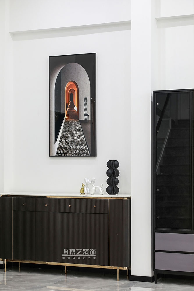 摒棄繁復的設計,選擇黑白灰的干練配置,在高挑的空間中,黑色低調卻不容忽視的氣場,不經意的撩撥著所有人的眼球。