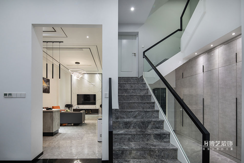 地下室區域為整個房子的休閑娛樂區,設計師改變了原來樓梯的朝向,使得地下室的動線更為獨立,互不影響;同時利用五米的層高優勢,增加了一個客房,既增加了儲物收納又可做親朋來訪時的休息室。