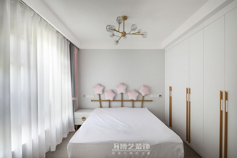 粉白粉白的布置,輕輕柔柔,造型獨特的粉色星星床,輕撫著一個又一個甜蜜而美好的夢鄉。