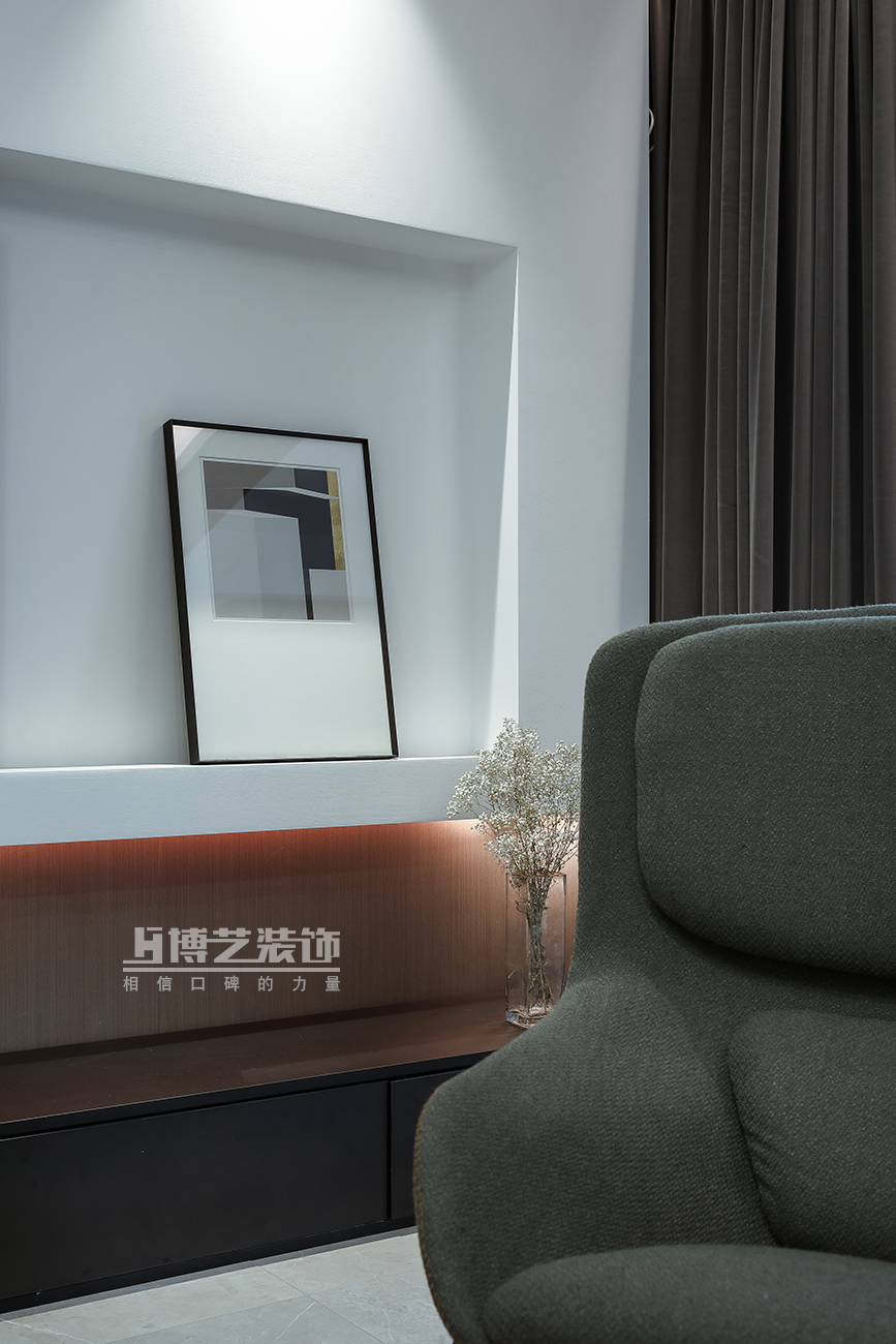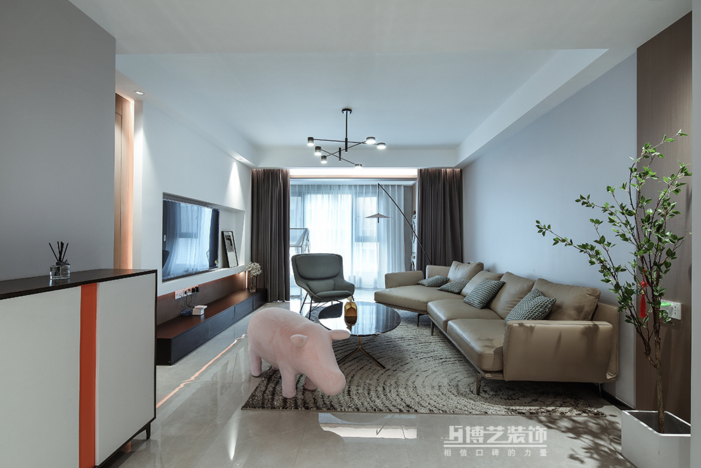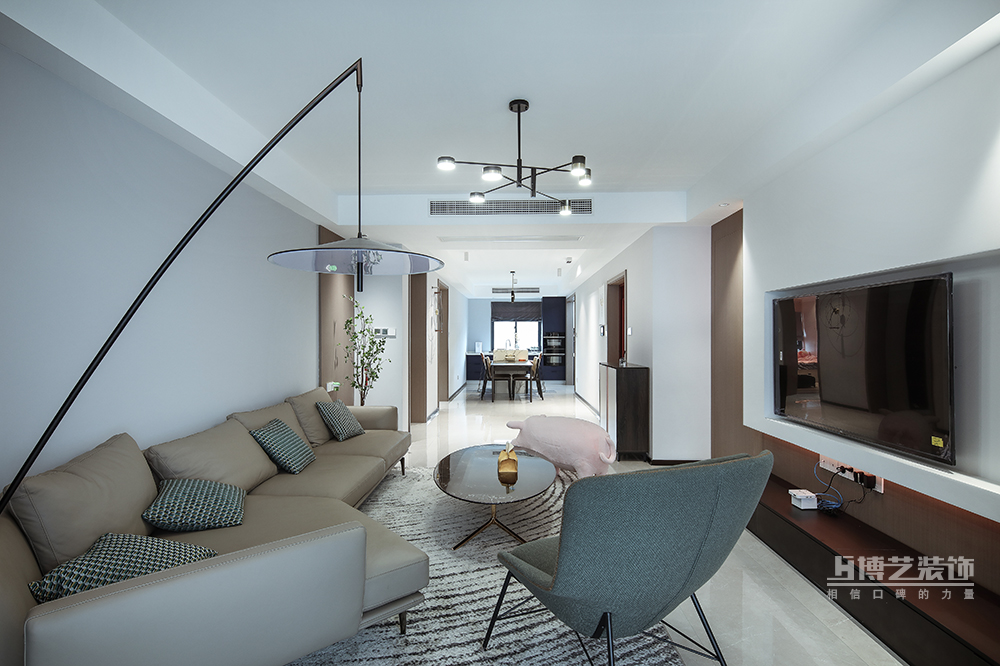 本案是一套四口之家的改善型新居,設計師將風格定義為低調卻不失品質的現代風,整體以白色為主基調,搭配造型簡約,現代感的家具以及優雅大氣的軟裝配飾,整體營造出一種時尚,現代感極強的空間氛圍。