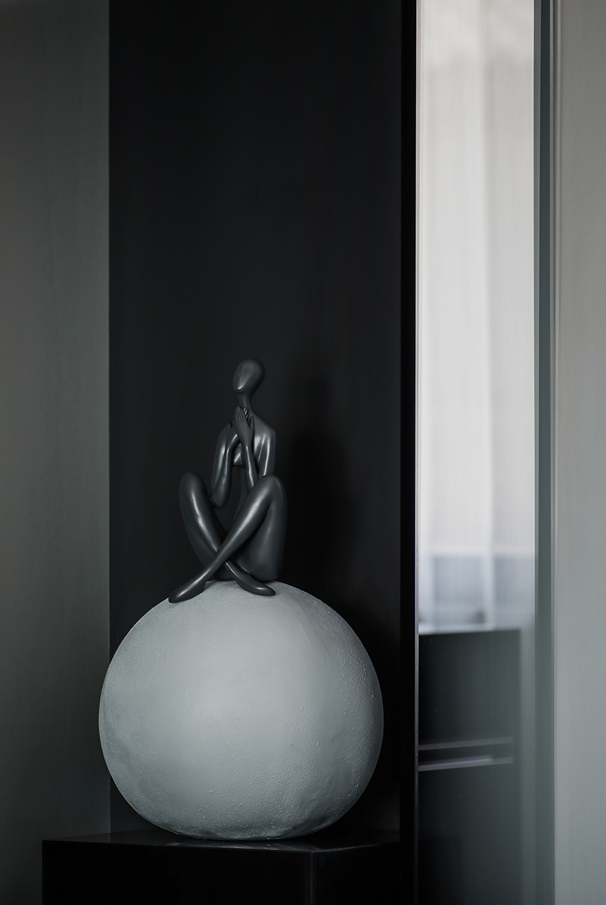 飽滿的自然光線從窗外傾瀉而入,弱化了黑白的冷硬,帶來溫柔的氛圍,與木作散發的溫潤的氣息相互融合,形成一個獨到的氣場。與眾不同不是另類的發展,而是你讀懂了多少。