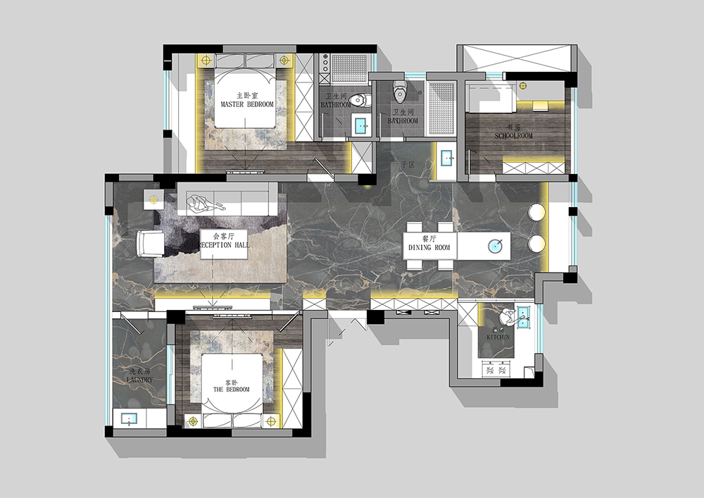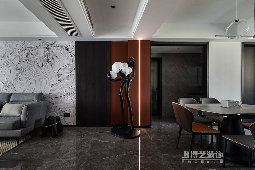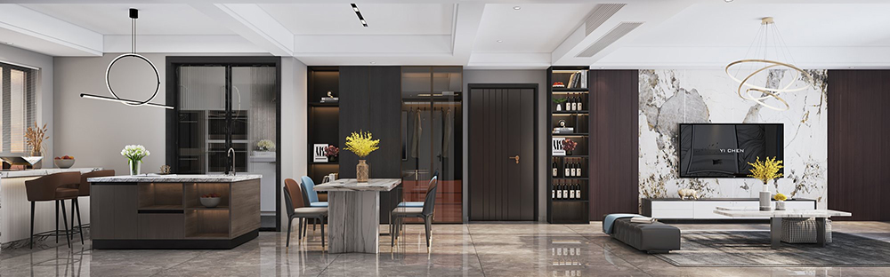 餐廳是家中不需要刻意營造就足夠溫情的空間,美食便是我們情感溝通交流最好的媒介,在暗色系的氛圍渲染中,清疏佳肴散發(fā)的人間煙火氣顯得別樣生動溫馨。