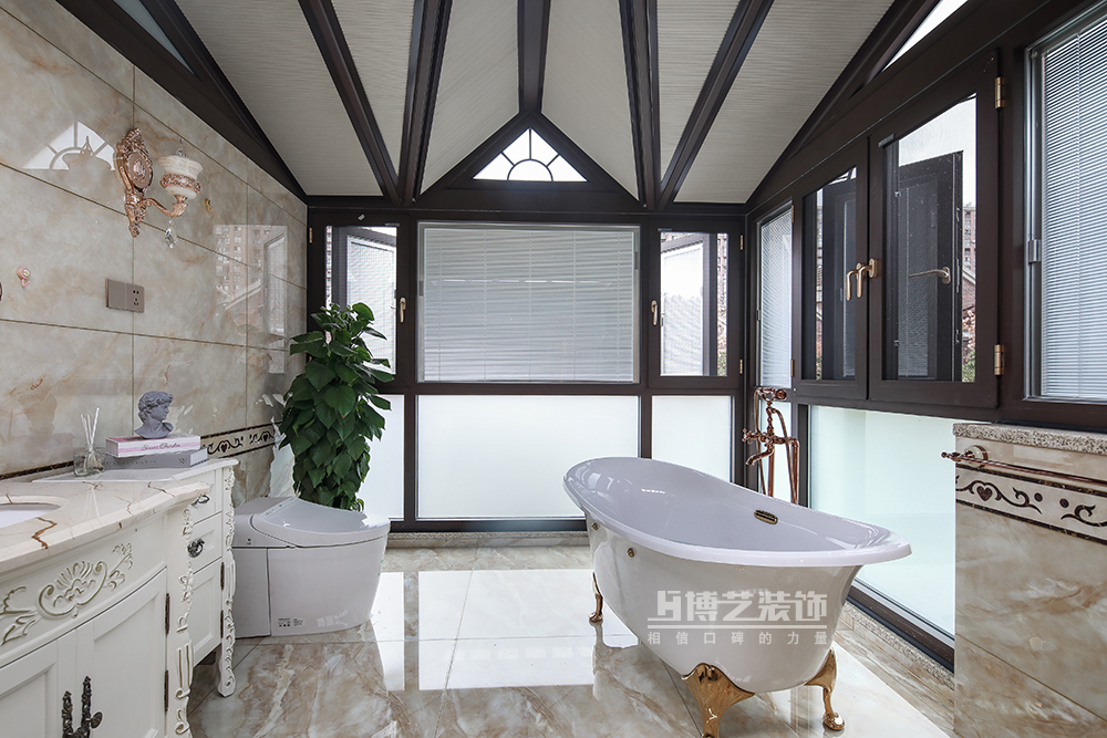 高挑的頂面,臨窗而放的復古浴缸,疲憊的時候在這超大的衛浴空間享受SPA的快樂。