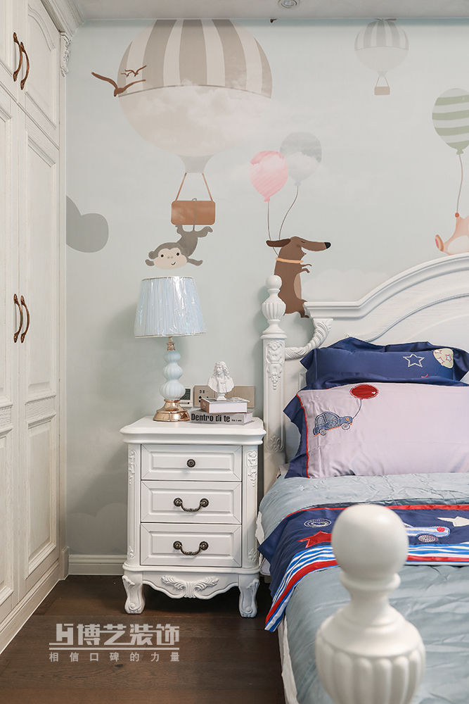 滿是童趣的房間里,小動物的墻布背景,汽車的床品,星星的窗簾,這是小小少年快樂成長的一方小天地,這是一處童真的世界。