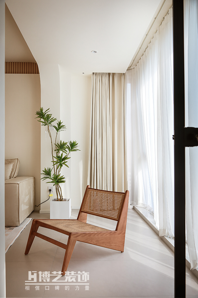 整體以自然的奶油風為主調,低飽和度的配色 搭配干凈簡潔的線條 再以綠植做點綴