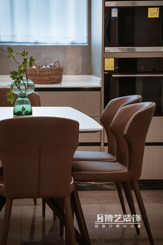 開放式廚房,將餐廳、廚房融為一體,利用門垛打造的吧臺又帶有幾分隨意,打開的空間讓家人間的互動與親密更為直接,中西廚的設(shè)計(jì)也讓烹飪更為全面不在束手束腳。