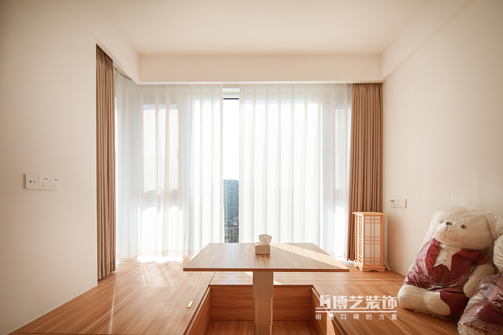 和室作為一個功能性的空間,日常可做休閑娛樂,寄托心靈的驛站,需要時也可做臥室使用。朝陽的空間讓室內光線充足,良好的視野更是可以放空心靈,享受陽光,享受生活。
