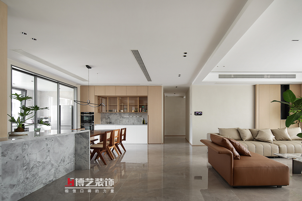 西廚又充當了餐邊柜的功能,原木和白色的加持,讓色彩和風格呼應而又統一。